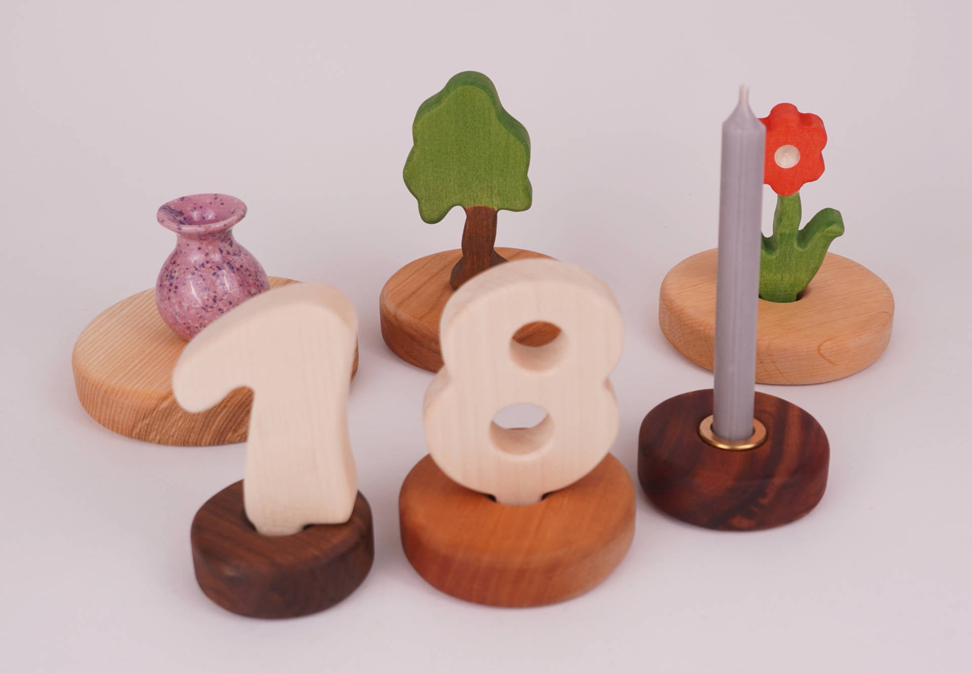 Individuell erweiterbare Geburtstagslichter: Ob als Zug, als Ring oder einzeln, sie sind erweiterbar und eine beliebte Deko bei allen Familienfeiern, ein Leben lang. Für die Kleinsten kommt mein Zug für den Geburtstagstisch mit einer Lok oder einem Tier als Zugteil und verschiedenen Anhängern besonders gut an. Die Sticker und die Zahlen können beim Kind in einen Zug gesteckt werden und bei Mama und Papa in einen Ring.